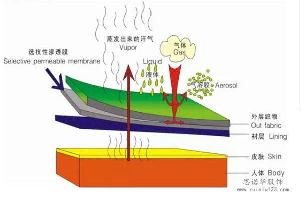 一般是指在布料底面做膠底,分coating和lamination兩種,coating就是常說的涂層,lamination是復合一層防水料在后面。這個才是真正的防水!一般真正的沖鋒衣布料都是會做噴刷防水涂料+后整工序做防水透氣膜的處理,做到對應的防水指數。而兩層工藝都做了的,用水龍頭的水直接沖刷布料的表面,底面還是保持著干爽的。