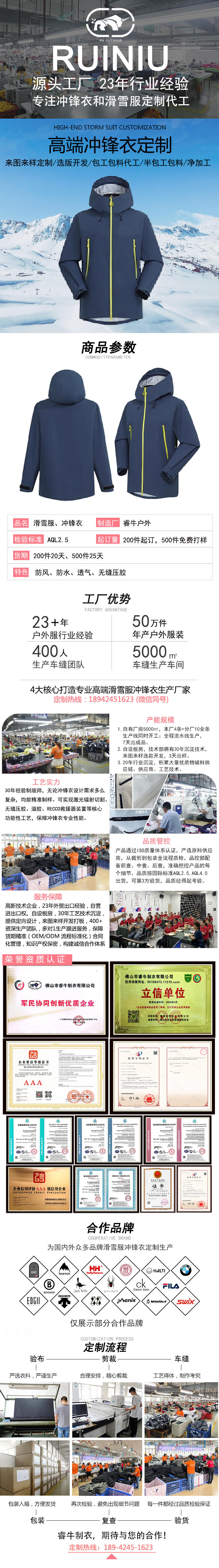 持續23年專注沖鋒衣、滑雪服定制加工廠家