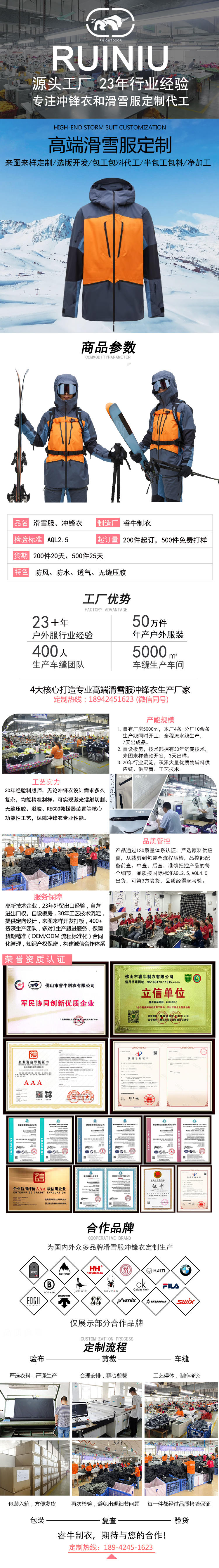 睿牛戶外服飾—滑雪服加工廠高端滑雪服定做加工